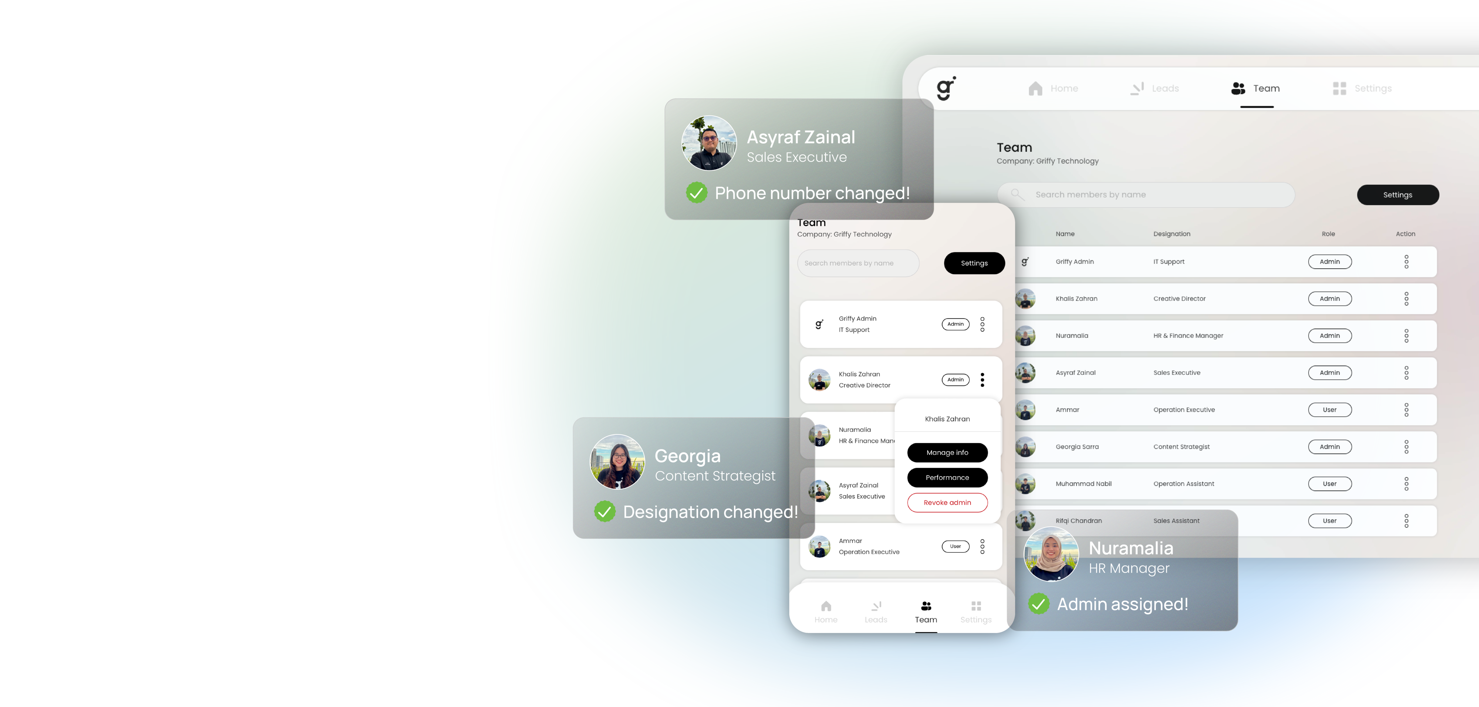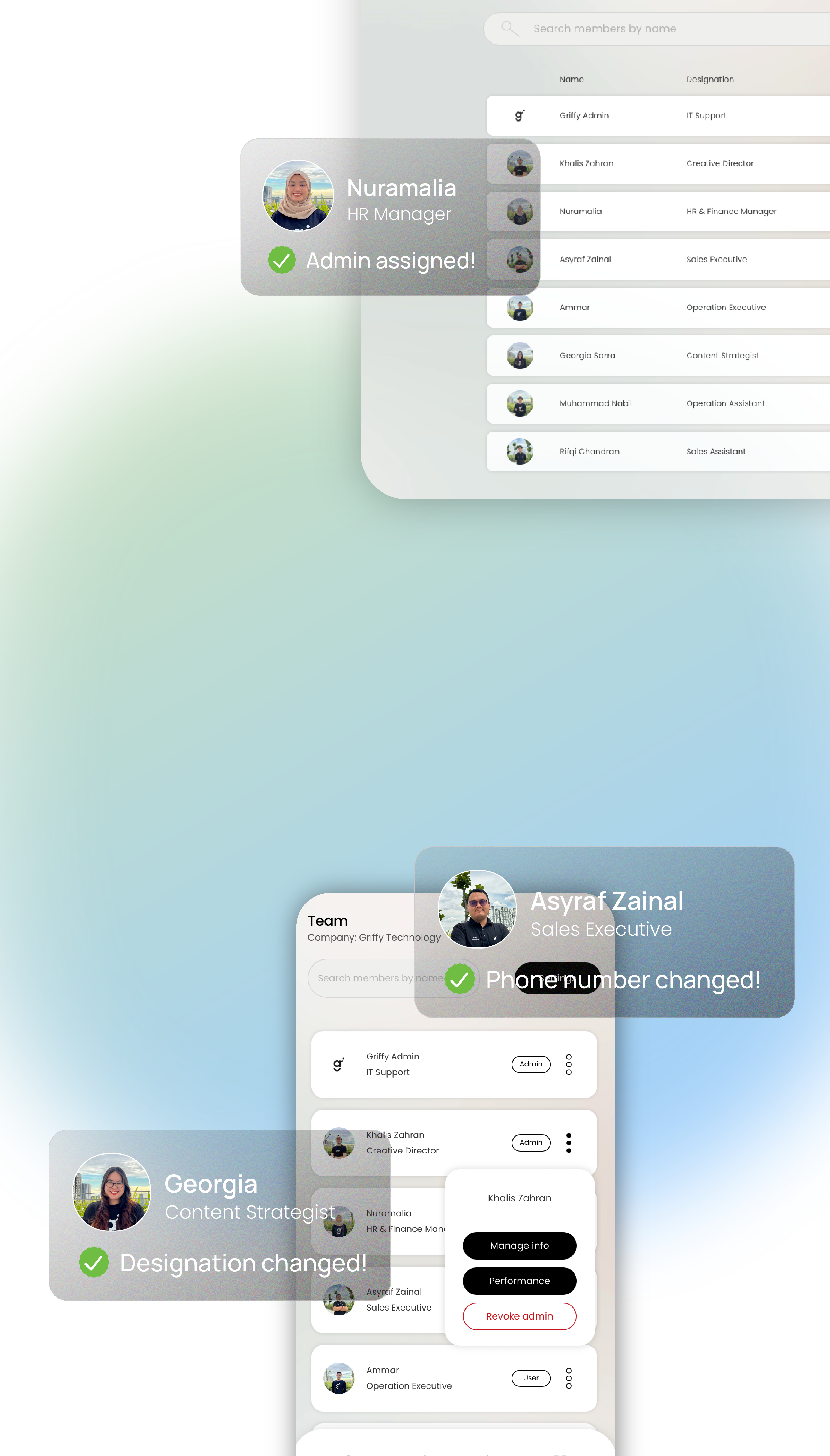 Griffy for teams is an excellent additional features focusing on solving problems with your team admin or HR activity